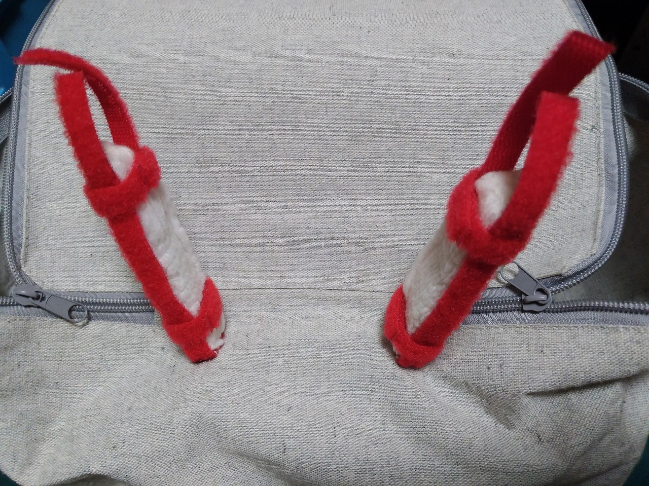 現在は改良してハンドルバーへの取り付けを廃止、取り付け取り外しが一段と素早く出来るようにマジックテープを打つ付けました。