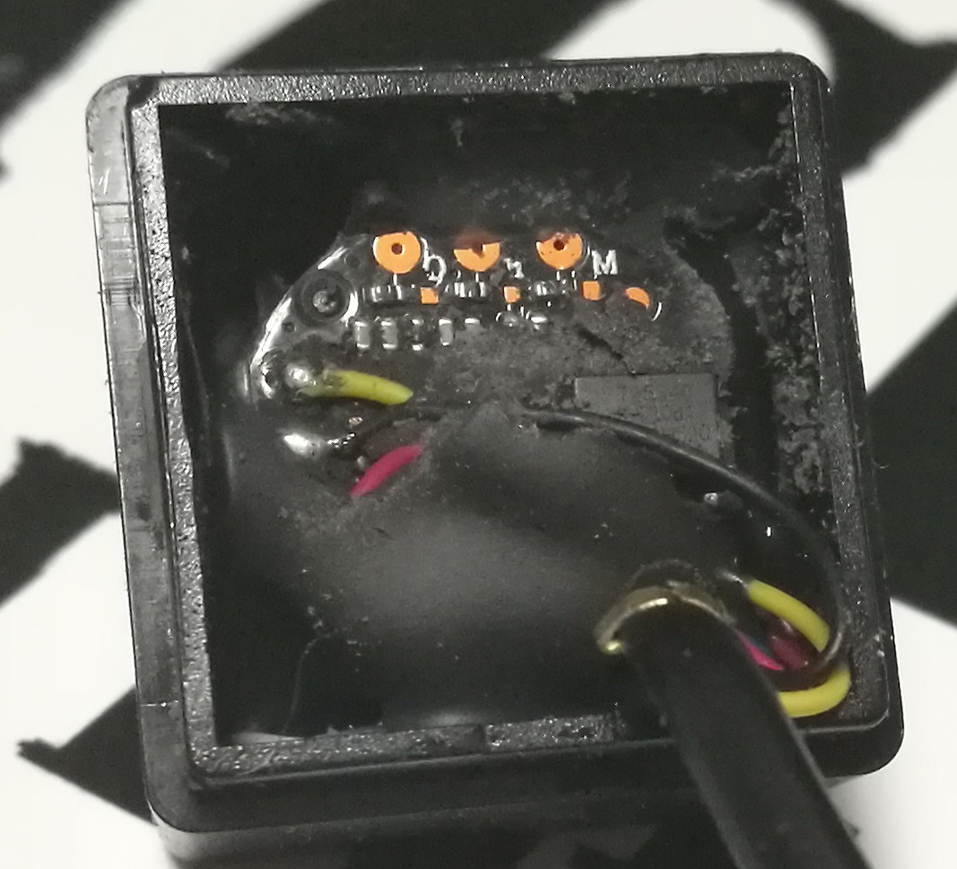 シリコン系の詰め物を基盤が見えるまで少しずつはがして行きます。