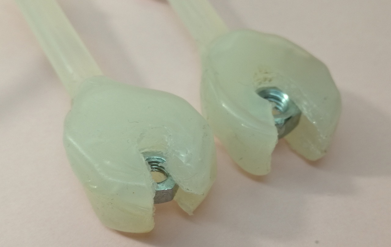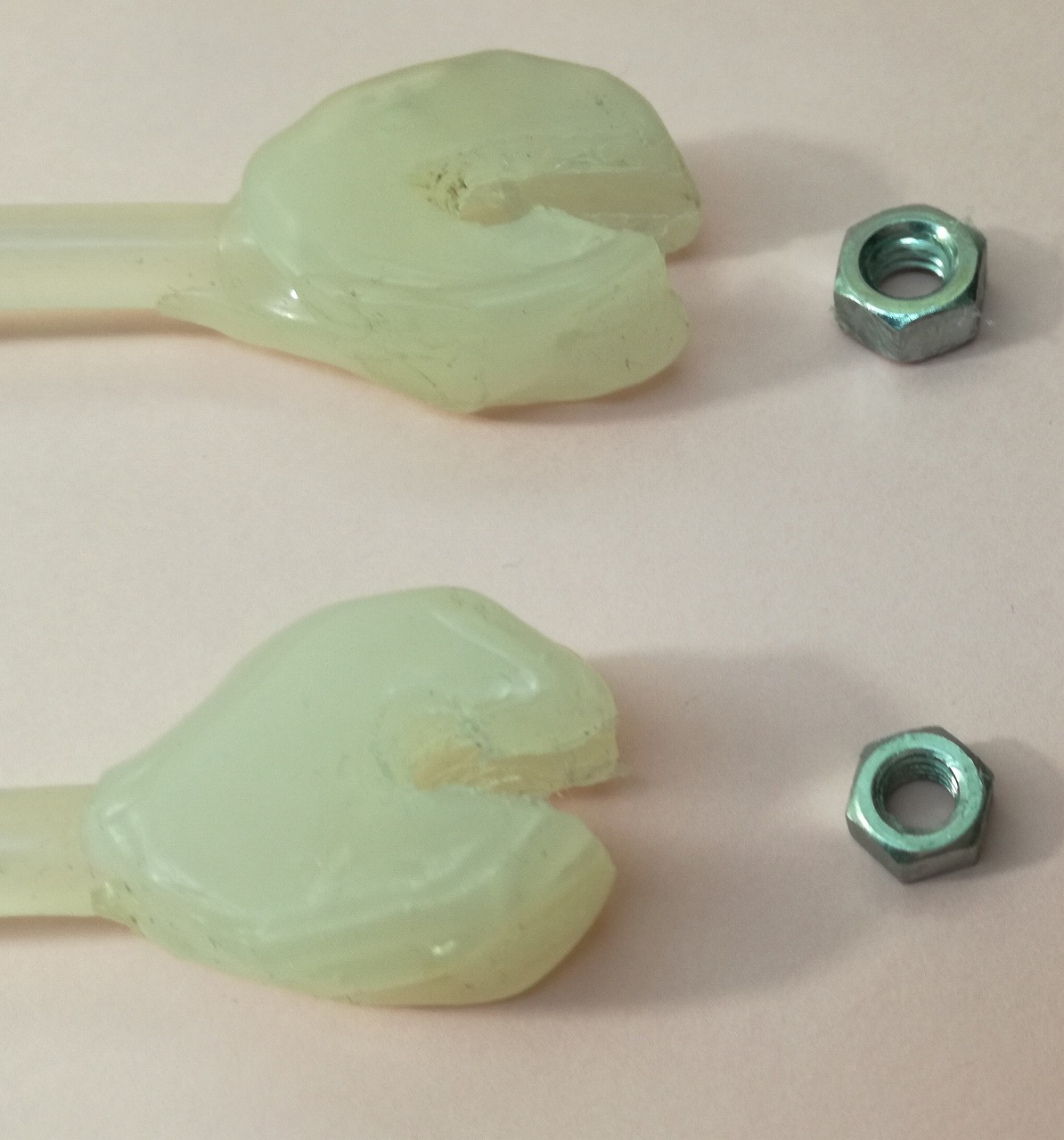 シリコンマットの上にナットを置いて上からグルーガンでたらして冷やせば完成。