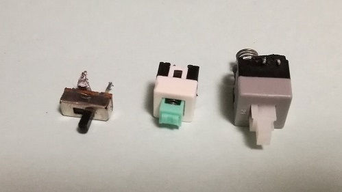 ON、OFFスイッチは何のパーツか不明、真ん中のがぎりぎり入りそうなので本体を削って