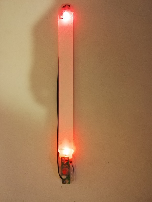 アクリル板の裏に白のカッティングシートを貼ったものにLEDを延長して両端から