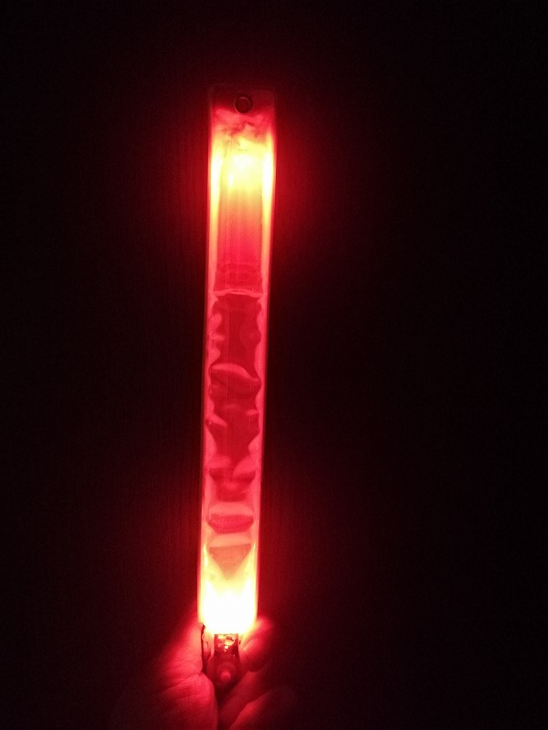 100均の暗いLEDライトでも正面から見ると眩しいので緊急事態でつける場合は下向きにしてゆっくり走行しましょう。(100均の物では街灯の無い所は歩く速さしか出せません。)