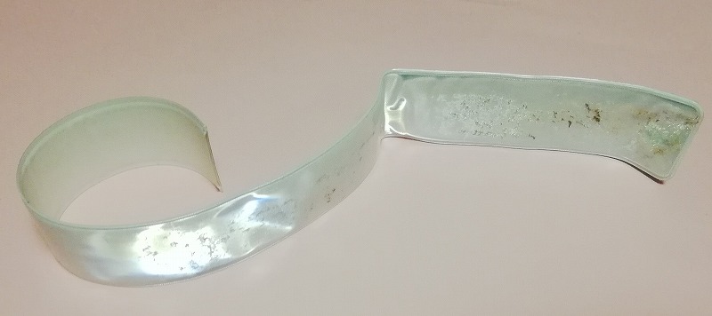 まずは電池仕様に戻してから試作品作成に取り掛かるがマーカーを何故作ろうと思ったかはワンタッチ裾止め(ぱっちん)ふくらはぎが太いので30cmのだと何となく心もとない長いのを検索してたら革製がやたらと出て来たので革製なら滑りにくい?でも試しに買うには高くて買えないから端切れで作成↓