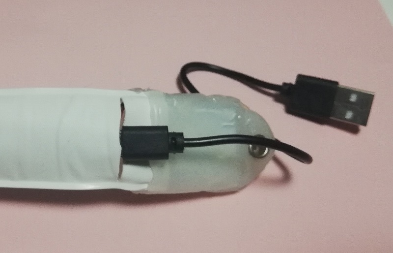 充電は後ろのスリットからMicroUSBで充電、テープでも貼っとけば小雨ぐらいなら大丈夫かな?