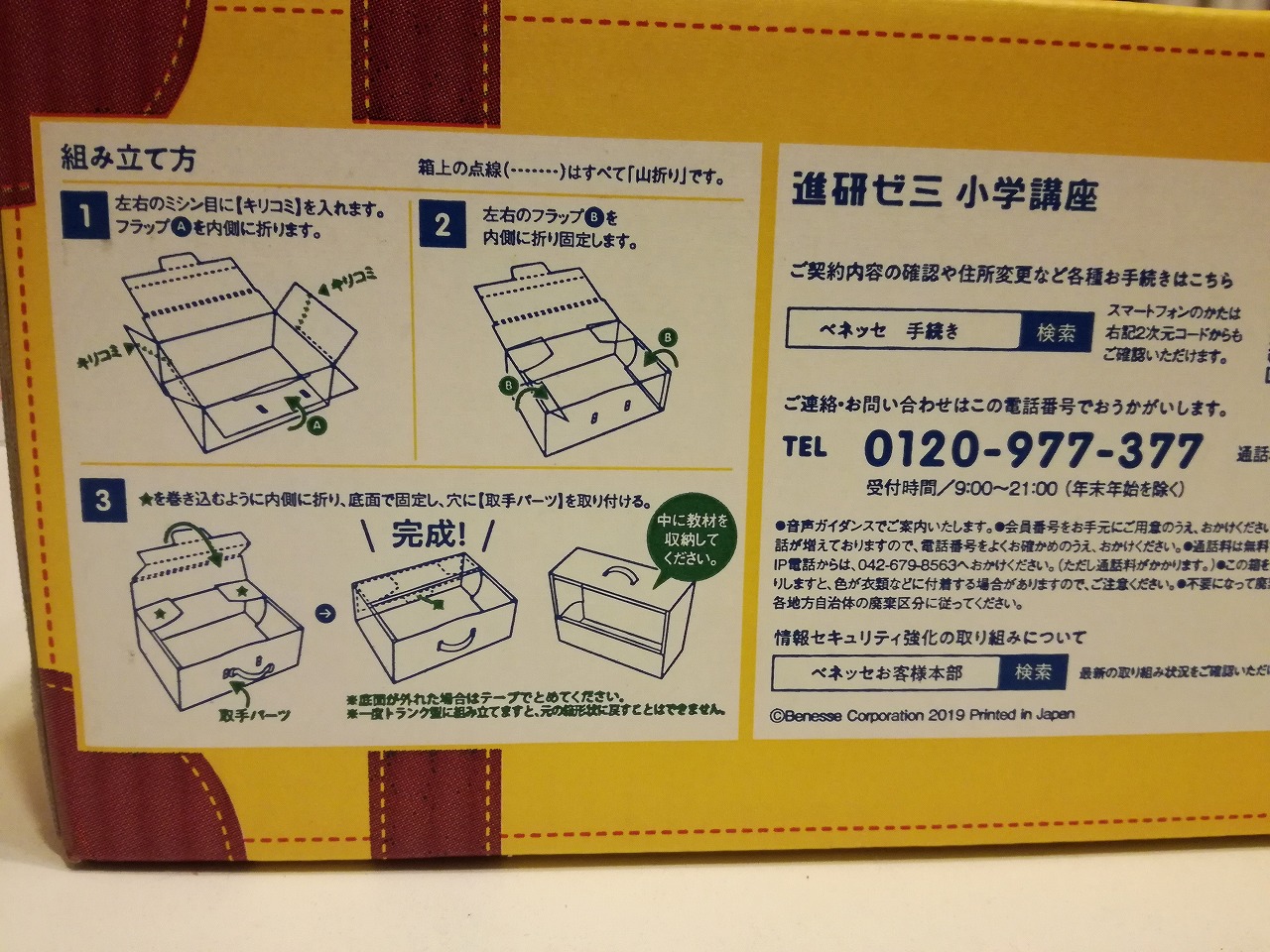 ベネッセ 1年生準備スタートボックス 送り状直貼り \(*`∧´)/ ヽ(`⌒´メ)ノ 2019年07月24日 外箱???組み立てて使うそうです。 使うんなら外箱にじかに送り状貼るのはどうなの? 組み立てると一応内側底部分になる所 詰め物なし 振ったらガタゴト 綺麗にはがせませんでした(ToT) スタートからこれじゃあね ちなみに、今解約したら、実費で送り返せと言うお言葉が聞けるそうですね。 どう言うつもりで送り状をじかに貼りつけるのか聞こうと電話したのですが30分待たされてあきらめました。 意外とクレームになって無いのか他の方のを見つける事が出来ませんでした。 ビニール袋1枚付ける事が出来ないほど追い込まれている経営? メルカリじゃあるまいしって思っちゃいましたけど時代なのかな~ 子供相手だからこそ気を配って欲しい一面でした。 PR