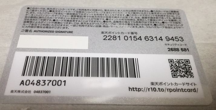 バーコードの部分だけ利用しますが楽天ポイントカード番号とセキュリティコードは楽天IDとひも付けするのに必要です。