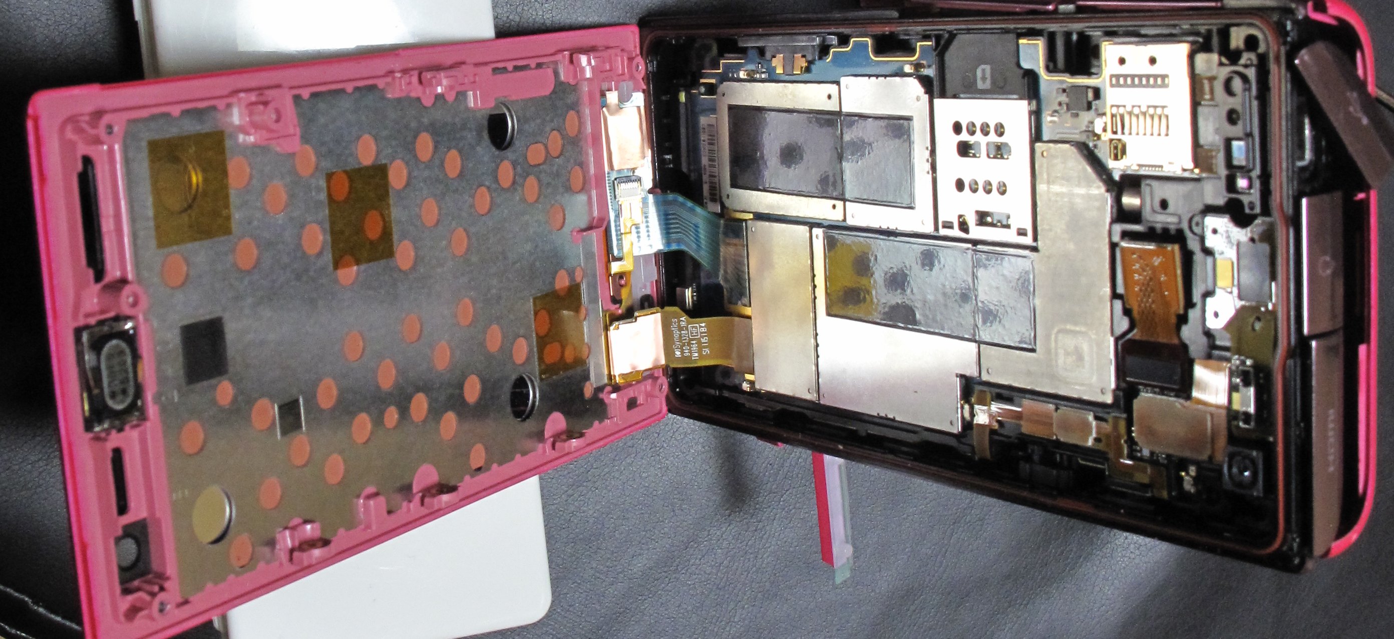 SO-03D sakura Xperia acro HD NTT docomo 電池交換 スマホ 2016年01月14日 SO-03D sakura Xperia acro HD NTT docomoの機体です。 SO-03Dでの検索が一番多いかな?Xperia acro HDではちょっとマニアックなサイトがヒットします。 root取りたい時などは色々な名前で検索してみてください。sakura(桃色)Aqua(青)Black(黒)Ceramic(白) カラーバリエーションが独特な名前なので白色など白ロムの記事にまぎれてヒットしません。 検索の言葉がいつも解らないので、たどり着いたページが何処からのリンクで来たのかも迷う始末。 さて、電池交換ですがdocomoで有償で交換してくれます。 有償と言う事は自分でやるなら後はしらんぞと言われてる事なので自己責任でroot取得より危険! ホーム画面でメニューキーを押し、「設定」→「Xperia」→「電池性能表示」で電池パックが劣化しているかどうかを確認することができるようになっています。バージョンによってか良好または%表示してくれます。 端末のフリーズ(操作できなくなる状態)には電池パックが取り外せないので電源キーと音量上キーを同時に長押しすることでリセットされるようになっています。 もう駄目、買い替えする、まで追い詰められてからで十分です。基盤、配線一つで文鎮化ですので自己責任で。 裏面下側の所を下に押すようにずらして爪が外れたら上に持ち上げる。 3か所ネジが見える様になりますが先に電池カバーを外しましょう。先にネジ外しても別に結構です。 充電端子のある方の下から順番に爪をはがして行きます。最初の1個は画像左のえくぼの所です。 最初は度胸いりますが裏のカバーは爪で引っかかっているだけなので(パソコンのように隠しネジはありません) 上では無く外側へ開いてやるようにすると上手く行きます。 外れないからとアンテナ側を外さないように、余計な負担がかかり外れにくくなります。 端子の蓋を開けて隙間から広げるように、本体上部のUSB端子まで全部外れるとアンテナ側はすんなり外れます。 先のネジ3個と上の方に5個のネジが見える様になります。特殊ネジですので専用ドライバーかマイナスドライバーで外します。専用ドライバーをお奨めします。 Amazonで安くてPCショップより良いのがあります。 Amazonの方がレビューあるので参考に、PCショップで買ったらネジをナメてしまいました。 ネジにはゴムパッキンが付いていますので無くさないで下さい。 側面、こちらはプラスドライバー、充電端子側2本、アンテナ側3本、アンテナの横のはアンテナの固定ネジですのでそのまま。外すのは5本です。 液晶パネルを外しますが爪は本体側面真ん中ぐらいですが固着もありますので本体上部からゆっくりと。 本体下部側に2本のコードを本体(基盤)側を外します。引き上げるだけで外れます。 充電端子は本体外側へ押し出せば取れます。 本体下側から基盤を外しますがSIMカードスロットの所がひっかかりますので無理せずに本体を広げて。 本体上部の端子は下に引き抜く様になりますので気を付けて。 ひっくり返すとこの様に、3本のコードの端子はコネクタぎりぎりの所をこじるように浮かせて全体的に浮かせる様に外して、電池パックは両面で張り付いてると思います。 組み立ては逆工程ですが自分の解りやすい様に指さし写真を撮るなどメモしながらバラして行く事をお勧めします。ネジ、端子カバー、ボタンを確認しながら組み立てて下さい。 他のサイトも参考にしながら自己責任でお願いします。 ご安全に! PR